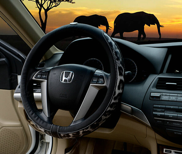 | Cool Auto Steering Wheel Wrap Snake Print Genuine Leather 15 Inch 38CM - Black |