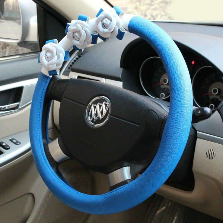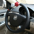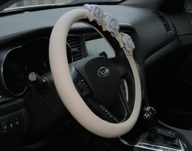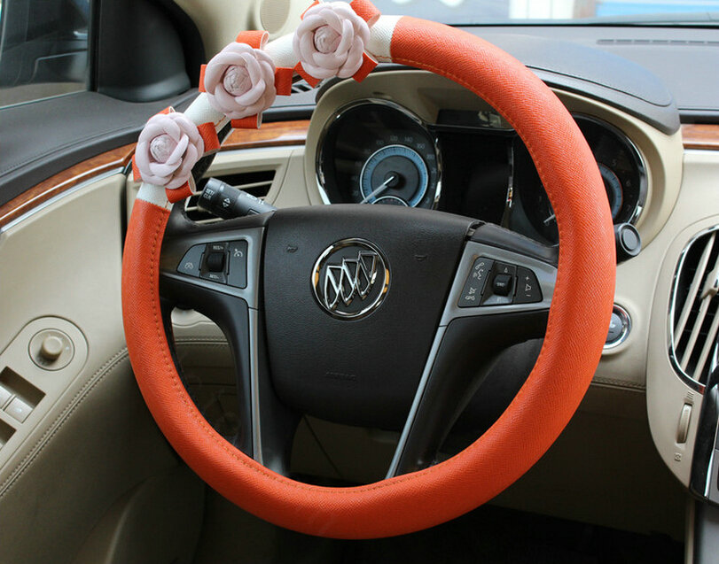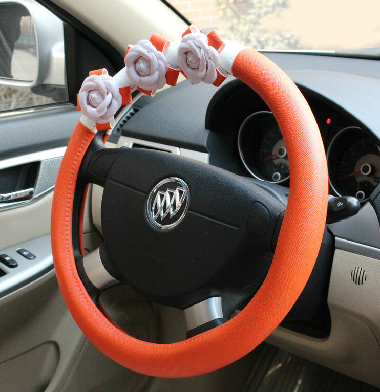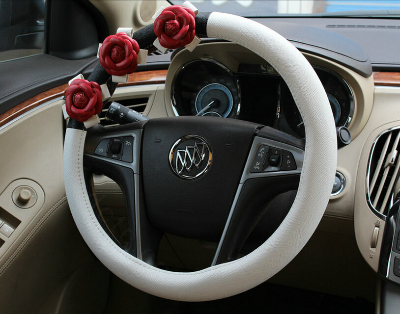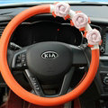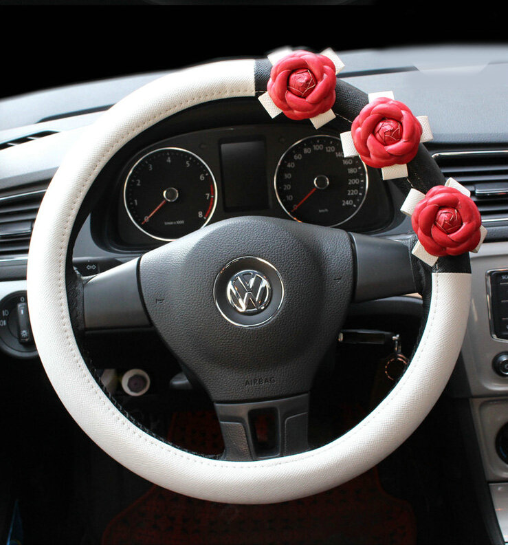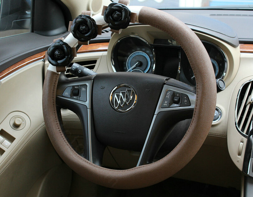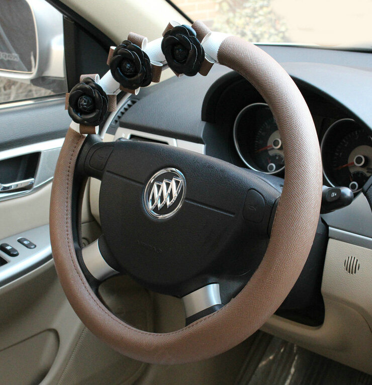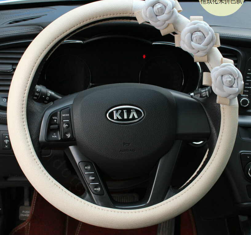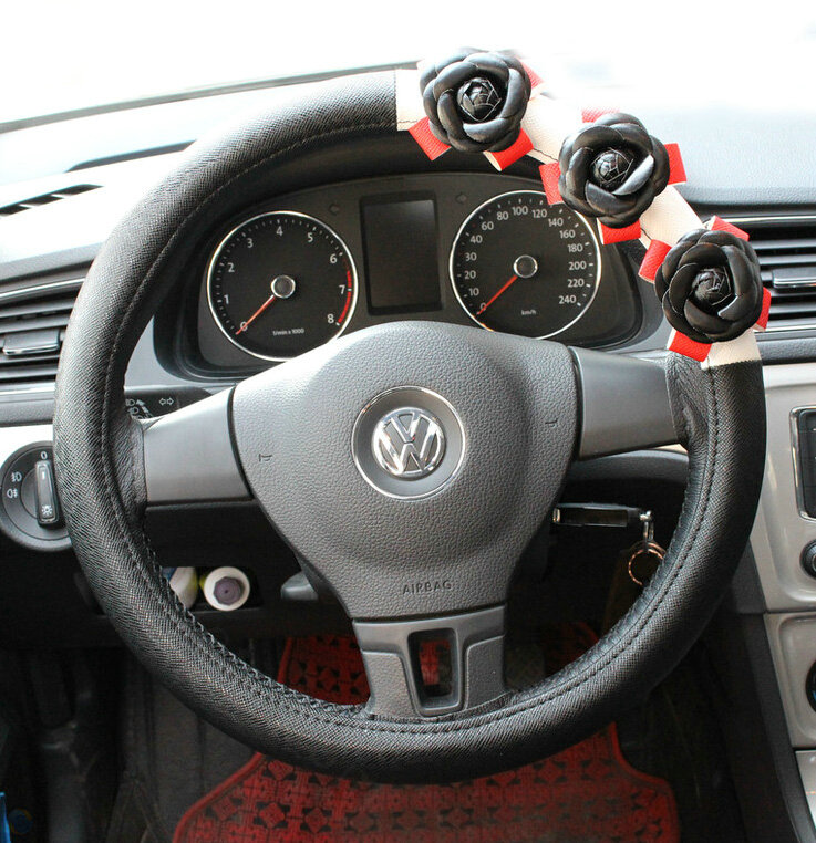 Cool Camellia Car Steering Wheel Wrap PU Leather 15 Inch 38CM - Black This item will be shipped from China