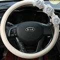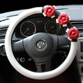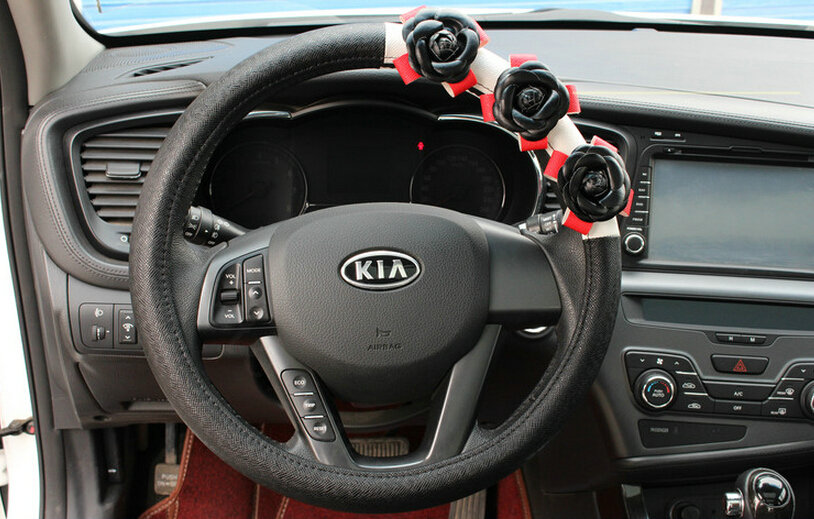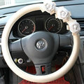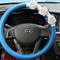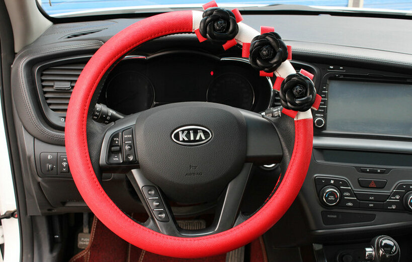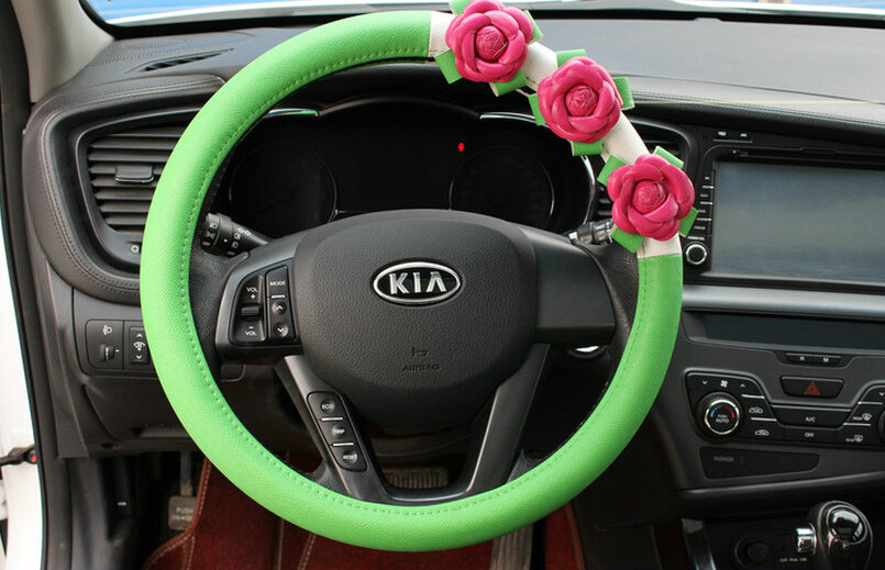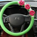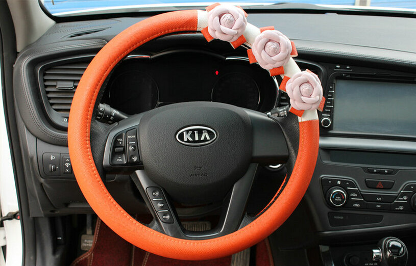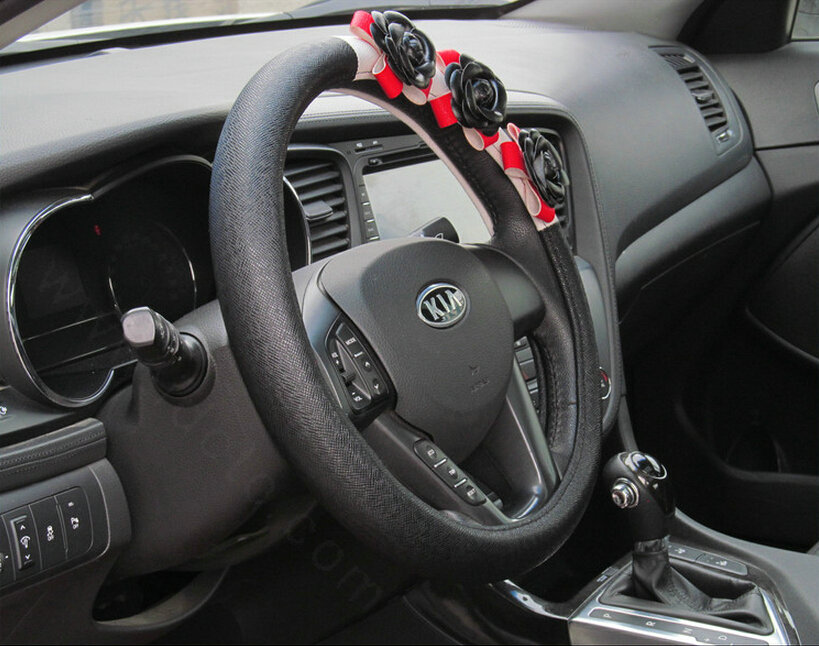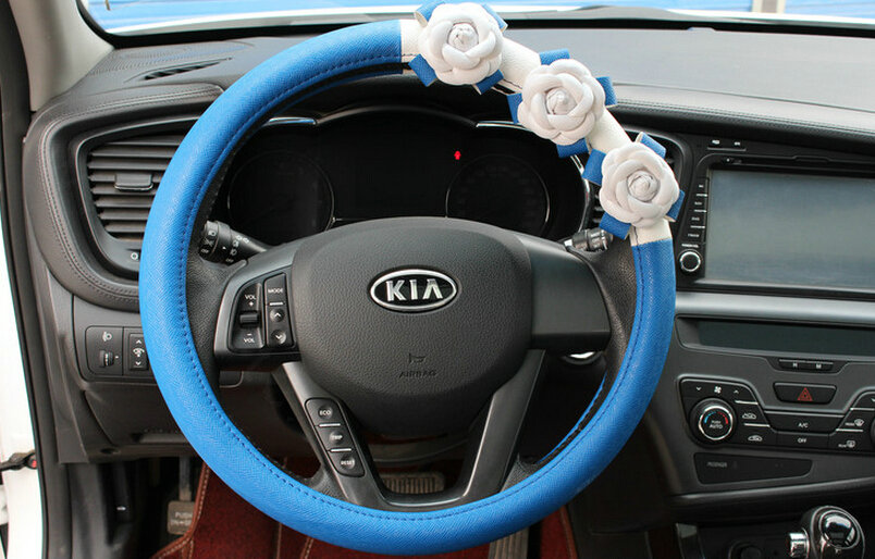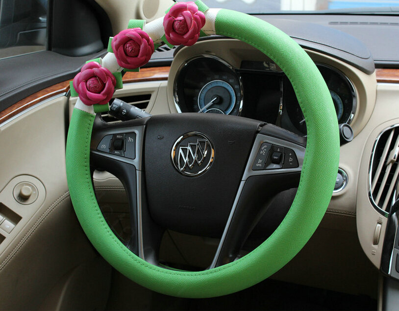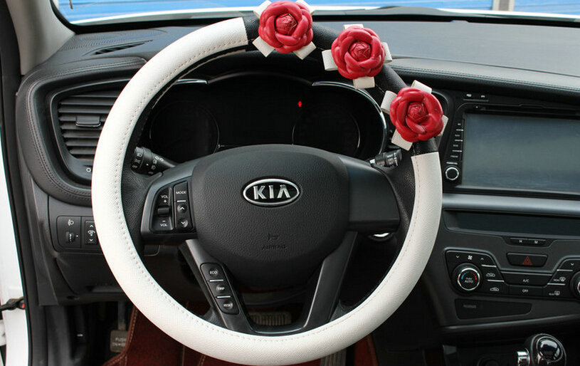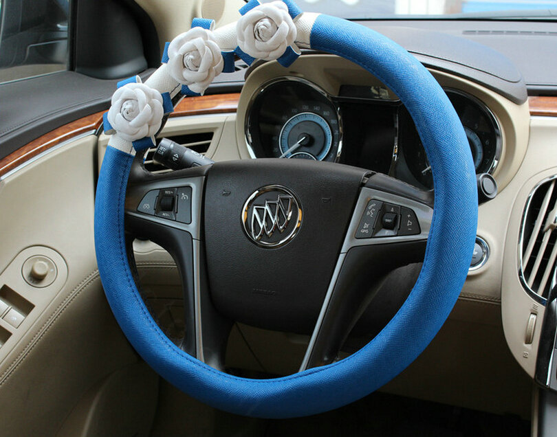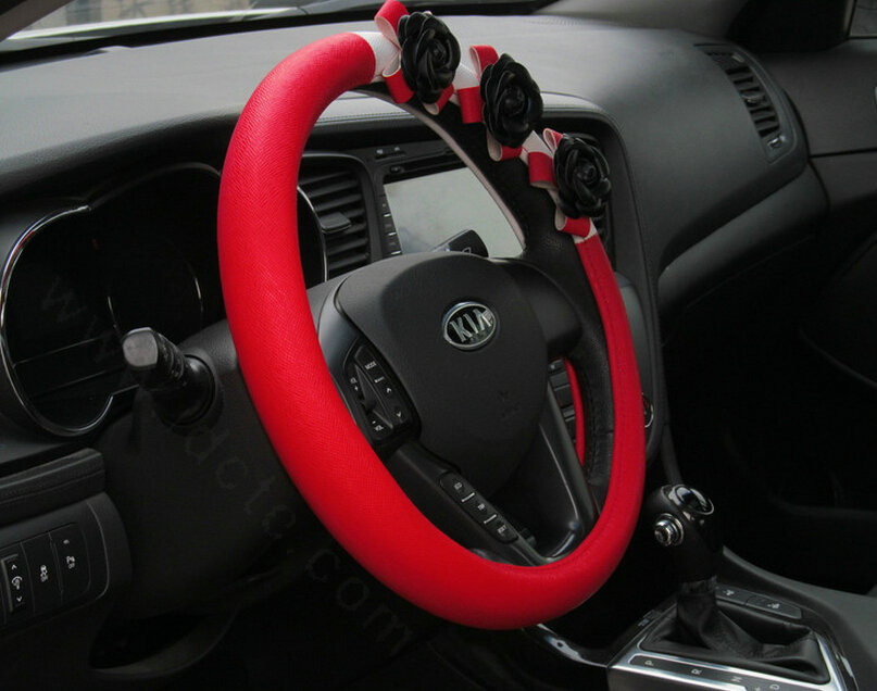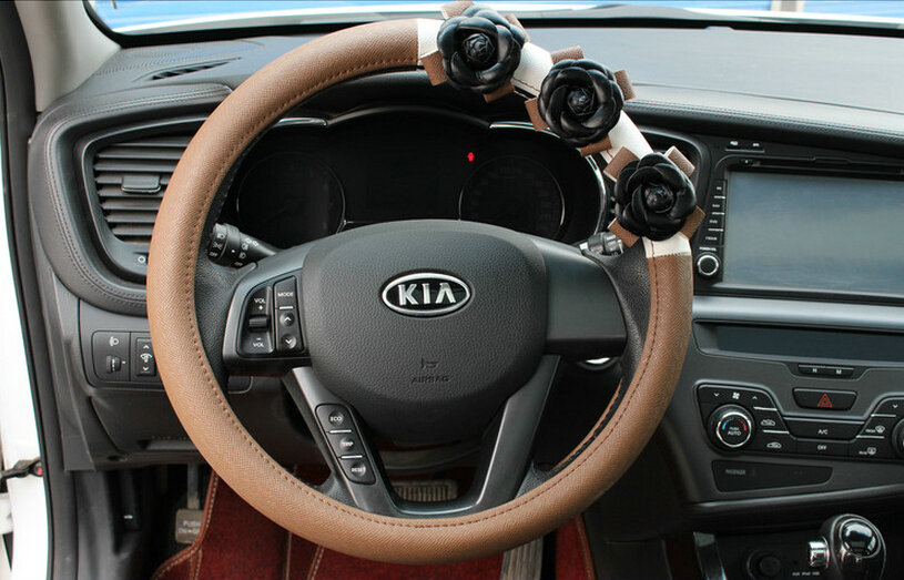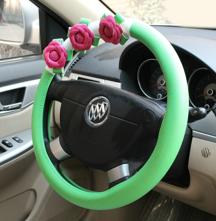 Cool Camellia Car Steering Wheel Wrap PU Leather 15 Inch 38CM - Black This item will be shipped from China