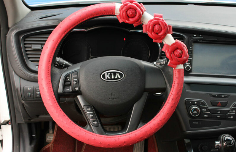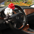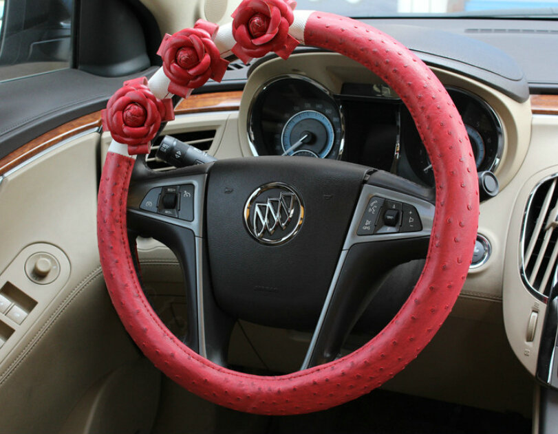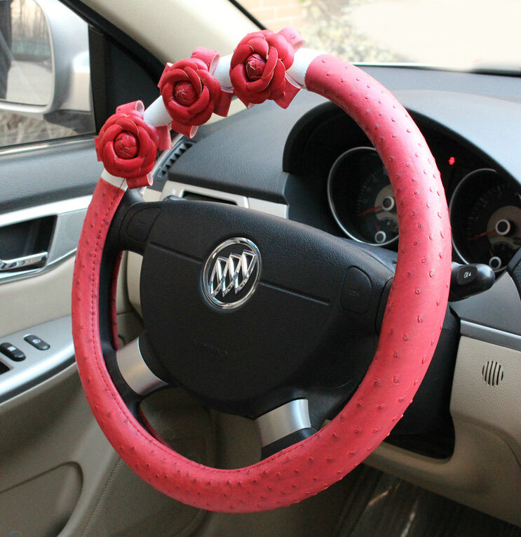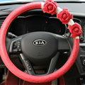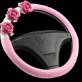 | Cool Camellia Dot Car Steering Wheel Wrap PU Leather 15 Inch 38CM - Rose |