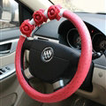 Cool Camellia Dot Car Steering Wheel Wrap PU Leather 15 Inch 38CM - Rose This item will be shipped from China