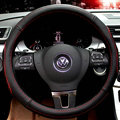 Cool Car Steering Wheels Covers Genuine Leather 15 Inch 38CM - Black Red