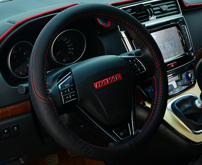 Cool Car Steering Wheels Covers Genuine Leather 15 Inch 38CM - Black Red This item will be shipped from China
