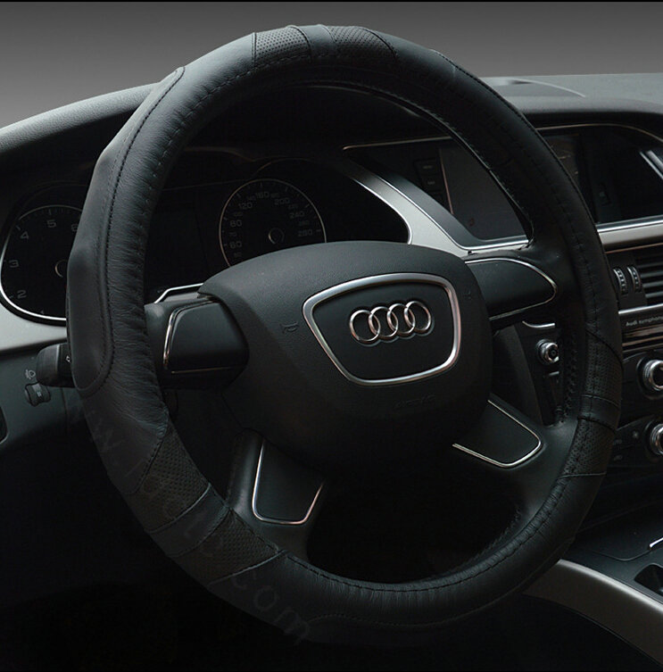 Cooling Auto Steering Wheel Wrap Genuine Leather 15 Inch 38CM - Black Red This item will be shipped from China