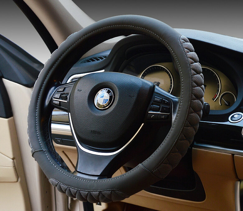 | Cooling Car Steering Wheel Wrap Ice Silk PU Leather 15 Inch 38CM - Brown |
