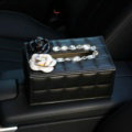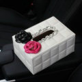 CODE:0006459328092016 NAME:Creative Camellia Leather Crystal Car Tissue Paper Box Holder Case Interior Accessories - Black Rose
