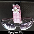 Crystal Daisy Fastener Clip Sun Visor Sunglasses Women Diamond Decorative Card Ticket Clip Holder - Pink