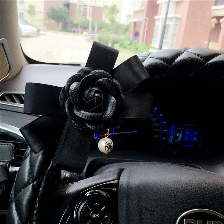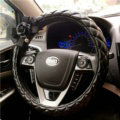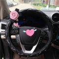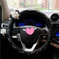 CODE:0006722211012019 NAME:Crystal Flower Pu Leather Vehicle Steering Wheel Covers 15 inch 38CM - Black Rose
