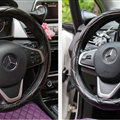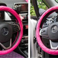 Cute Ears Universal Car Steering Wheel Covers Diamond-shaped PU Leather 15 inch - Black Rose