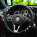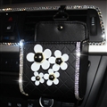Daisy Bling Women Leather Car Rearview Mirror Elastic Covers Motorcar Interior Decorate - Black