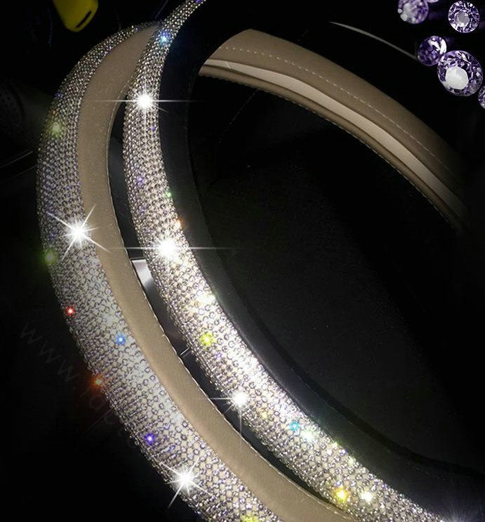 Diamond Lace Flower Pu Leather Car Steering Wheel Covers 15 inch 38CM - Green Red This item will be shipped from China