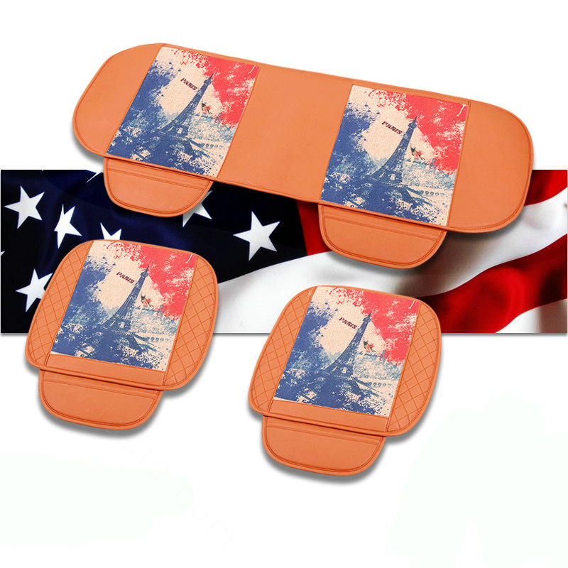 Eiffel Tower Leather Car Seat Cushion Front and Rear Universal Auto Pads 3pcs Set - Brown This item will be shipped from China
