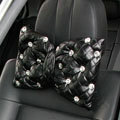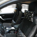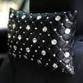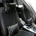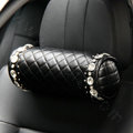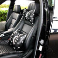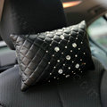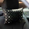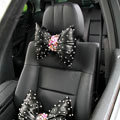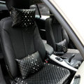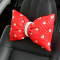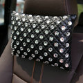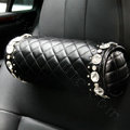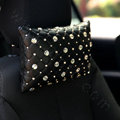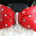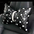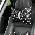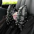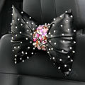 Elegant Bowknot Rhinestone Car Headrest Genuine Sheepskin Neck Safety Pillow 1pcs - Black This item will be shipped from China