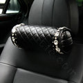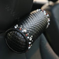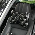 Elegant Bowknot Rhinestone Car Headrest Genuine Sheepskin Neck Safety Pillow 1pcs - Black