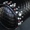 * Selected high-grade sheepskin leather, rhinestone, do not fall off * Easy to clean, no deformation, high wear resistance * Fine workmanship, soft touch, green, no stimulation, non-Slip * Luxurious genuine leather collocation delicate crystal * The style is novel and chic, generous and fashion, good vision feel * Easy to fit and taken off from car seats * More effectively protect your safety and comfortable driving
