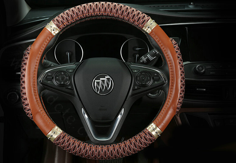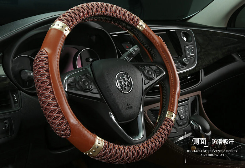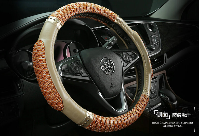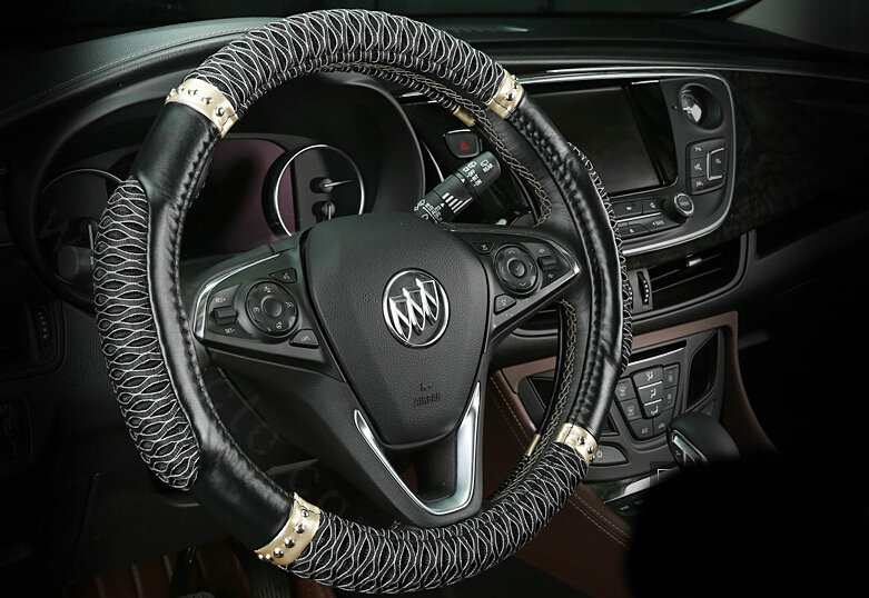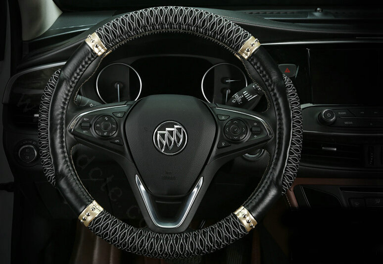 Elegant Car Steering Wheel Wrap Ice Silk PU Leather 15 Inch 38CM - Black This item will be shipped from China