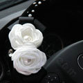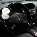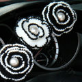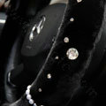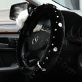 Elegant Crystal Pearls Rose Genuine Wool Auto Steering Wheel Covers 15 inch 38CM - Black