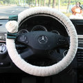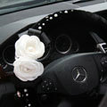 Elegant Crystal Pearls Rose Genuine Wool Auto Steering Wheel Covers 15 inch 38CM - Black This item will be shipped from China