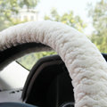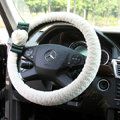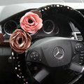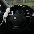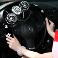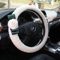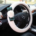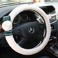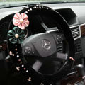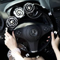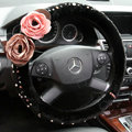 CODE:0005996517092015 NAME:Elegant Crystal Pearls Rose Genuine Wool Auto Steering Wheel Covers 15 inch 38CM - Black