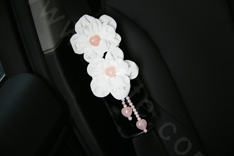 Elegant Female Flower Pearl Crystal Beaded Auto Seat Safety Belt Covers 2pcs - White This item will be shipped from China
