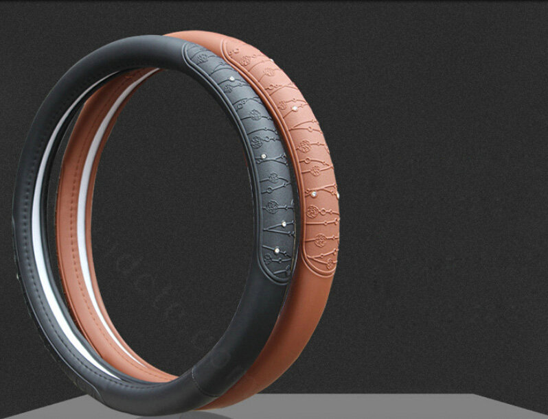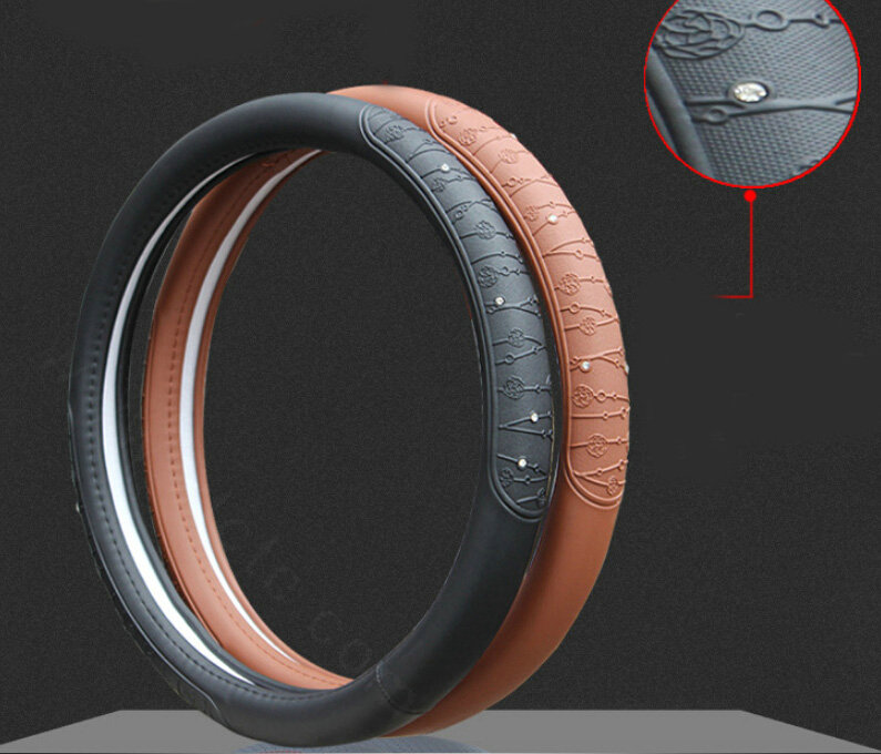 Fashion Diamond Car Steering Wheel Covers PU Leather 15 Inch 38CM - Black This item will be shipped from China