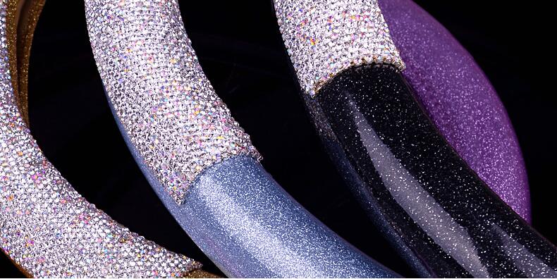 * Selected high-grade leather, Imported crystal , do not fall off * Add Gold powder in leather, Very sparkle in the light and sun * Inner ring using Natural rubber , Non-Slip design * Excellent breathability, with elastic smooth handfeel * Use the latest fashion elements, beautiful designed * The style is novel and chic, generous and fashion, good vision feel * Easy to clean and installation, no deformation, high wear resistance