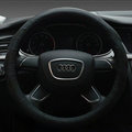 | Fashion Knitting Auto Steering Wheel Wrap Genuine Leather 15 Inch 38CM - Black Orange |