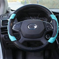Fashion Knitting Auto Steering Wheel Wrap Genuine Leather 15 Inch 38CM - Black Orange This item will be shipped from China