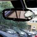 Floral Bling Women Leather Car Rearview Mirror Elastic Covers Motorcar Interior Decorate - Black