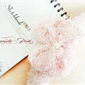 CODE:0006154423112015 NAME:Floral Bowknot Car Steering Wheel Cover Bud Silk Fiber Cloth 15 Inch 38CM - White