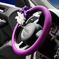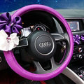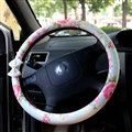 Floral Bud Silk Bowknot Car Steering Wheel Cover PU Leather 15 Inch 38CM - Pink This item will be shipped from China