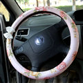 Floral Bud Silk Bowknot Car Steering Wheel Cover PU Leather 15 Inch 38CM - Pink