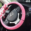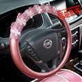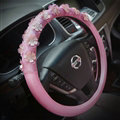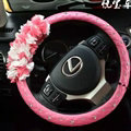 CODE:0006164924112015 NAME:Floral Car Steering Wheel Cover Bud Silk Genuine Leather 15 Inch 38CM - Pink