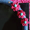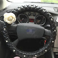Flower Diamond Grip Steering Wheel Covers General Genuine Leather 15 inch 38CM - Black