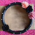 CODE:0005973312092015 NAME:Flower Diamond Grip Steering Wheel Covers General Genuine Leather 15 inch 38CM - Black