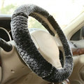 Fluffy Diamond Car Steering Wheel Wrap Velvet 15 Inch 38CM - Black