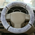 CODE:0006205901122015 NAME:Fluffy Diamond Car Steering Wheel Wrap Velvet 15 Inch 38CM - Black