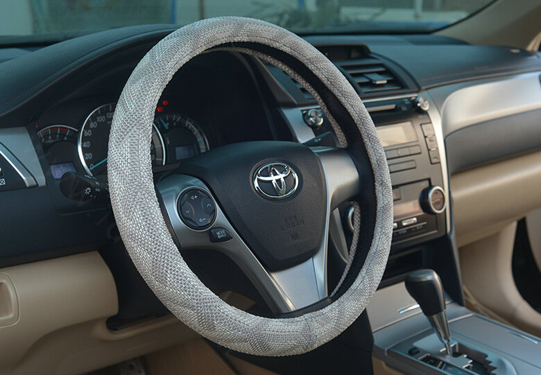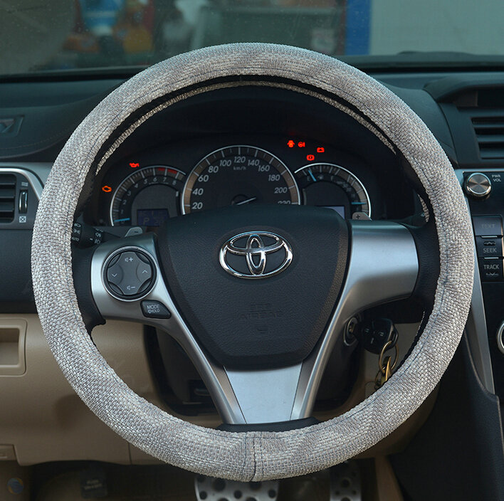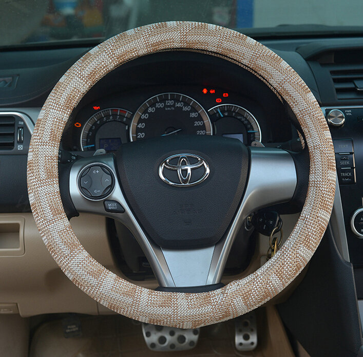 Fringe Car Steering Wheel Wrap Ice Silk 15 Inch 38CM - Beige This item will be shipped from China