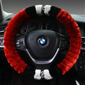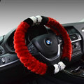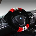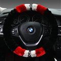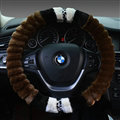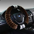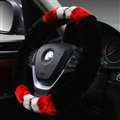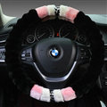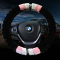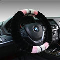 | Fuzzy Leopard Print Auto Steering Wheel Wrap Velvet 15 Inch 38CM - Black Pink |