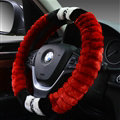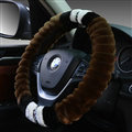Fuzzy Leopard Print Auto Steering Wheel Wrap Velvet 15 Inch 38CM - Black Pink This item will be shipped from China