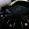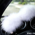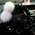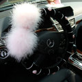 | Genuine Wool With Rabbit Ball Fur Powder Crystal Auto Steering Wheel Covers 14 inch 36CM - Black |