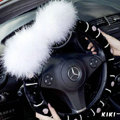 Genuine Wool With Rabbit Ball Fur Powder Crystal Auto Steering Wheel Covers 14 inch 36CM - Black This item will be shipped from China