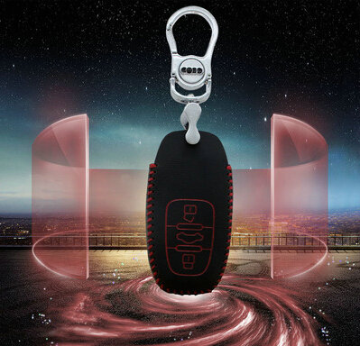 Good Genuine Leather Key Ring Auto Key Bags Smart for Audi Q5 - Black This item will be shipped from China