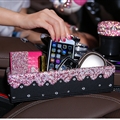 Gorgeous 1pcs Crystal Car Storage Bucket Leather Storage Box Diamond Auto Storage Bag - Pink