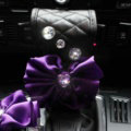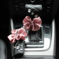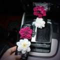 Gorgeous Flower Crystal Leather Rearview Mirror Cover Handbrake and Gear Cover 5pcs Sets - Black This item will be shipped from China
