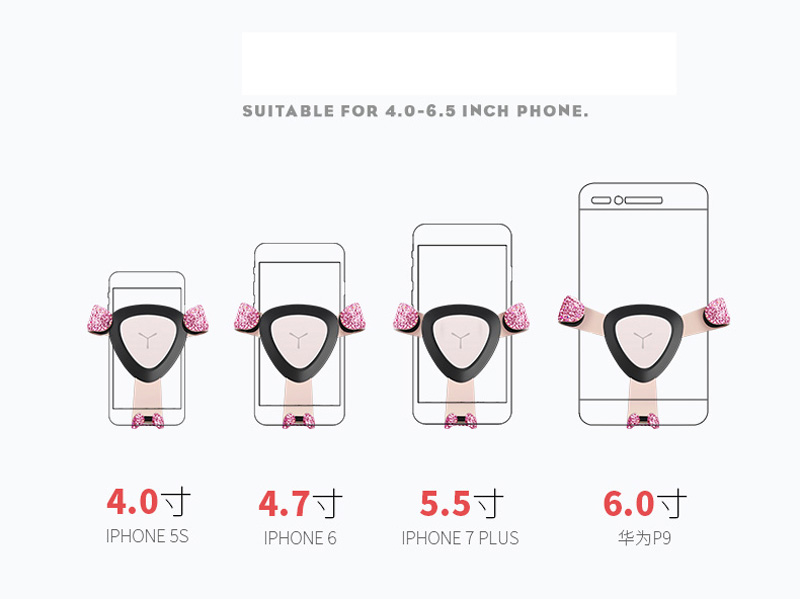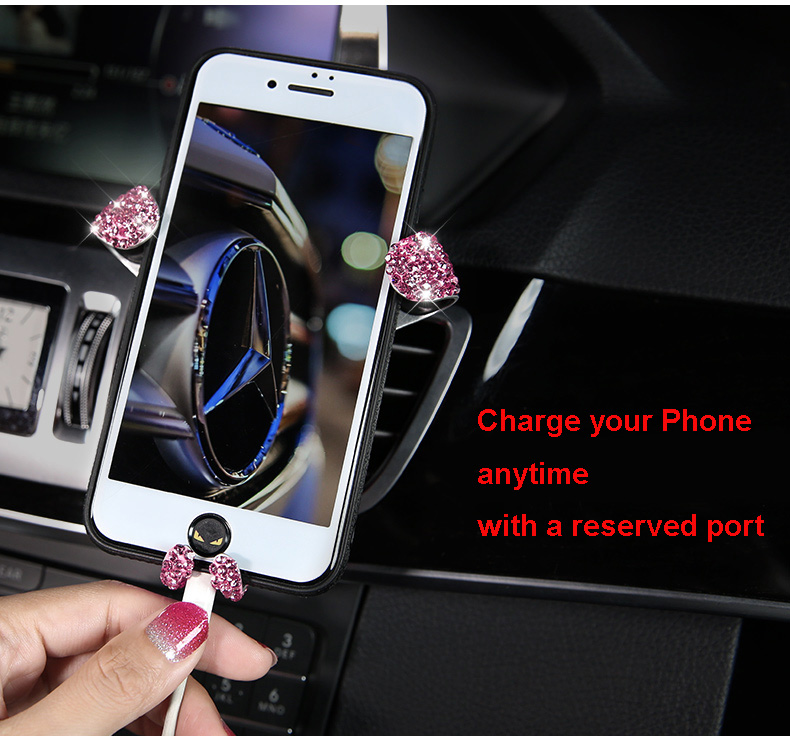 * Item Type: Interior Accessories & Car Air Vent Phone Holder * Size: Adjustable Universal * High quality Pure handmade, bing bing * Material : Durable ABS + Top rhinestones * Fine workmanship diamond, not easy to fall off * Exquisite workmanship, with bing bing rhinestones * Luxury, personality, Beautiful designed
