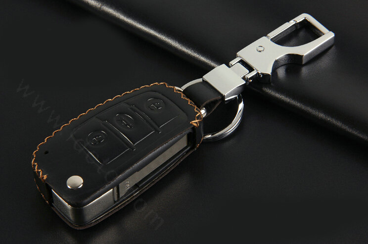 Hand-made Genuine Leather Auto Key Bags Fold for Audi Q3 - Black This item will be shipped from China