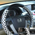 | High Quality Classic Plaid PU Leather Automobile Steering Wheel Covers 15 inch 38CM - Black Coffee |
