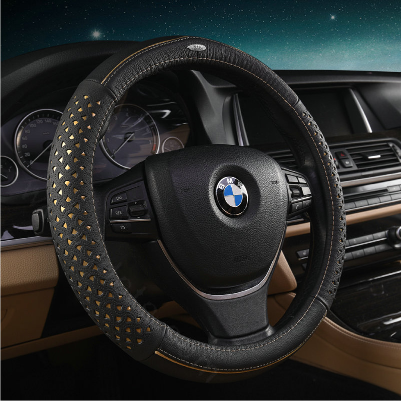 High Quality Hollow Car Steering Wheel Covers Anti-skid PU Leather 15 inch 38CM - Blue