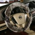 CODE:0006416019092016 NAME:Inexpensive Plush Fur Rhinestone Car Steering Wheel Covers 15 Inch 38CM - Gray